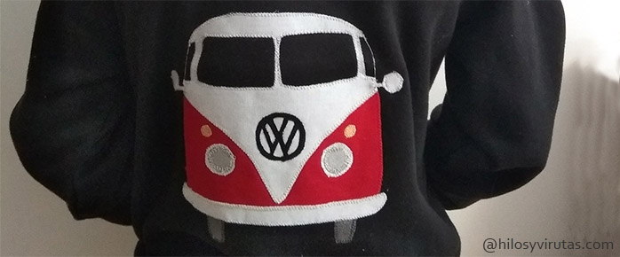 La sudadera negra, básica, con capucha y bolsillo delantero salió de un mercadillo por unas pocas monedas... Personalizarla y convertirla en la sudadera más surfera cosiendo aplicaciones hechas con pequeños retales de tela, ¡fue de lo más divertido! Si os gusta nuestra furgoneta modelo California clásica, en la red encontraréis numerosas plantillas que podéis adaptar… Sigue leyendo Sudadera Surfera con Aplicaciones