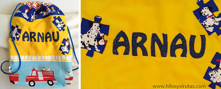 Estas mochilas personalizadas con el nombre son el perfecto regalo para cualquier niño y tan fáciles de hacer que no hay excusa para no intentarlo. Para esta en concreto hemos aprovechado diferentes retales de tela que, combinados entre sí, nos han dado este divertido resultado de perritos dálmata bomberos. Empezamos por la parte de atrás… Sigue leyendo Mochila con retales para Arnau