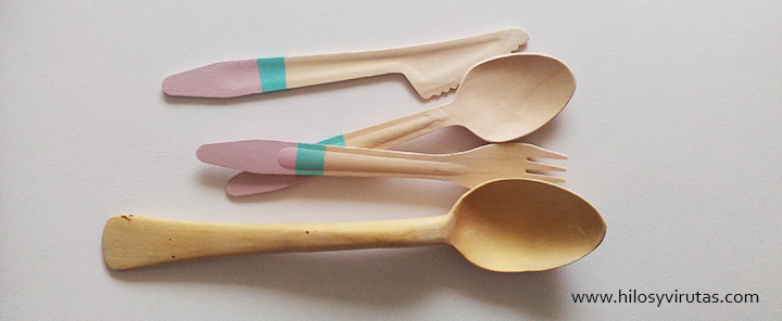 Cubiertos de madera de colores pastel