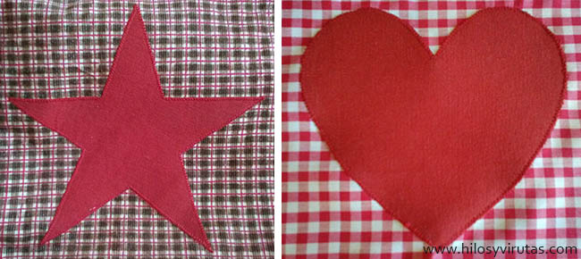Coser aplicaciones en tela: corazones y estrellas